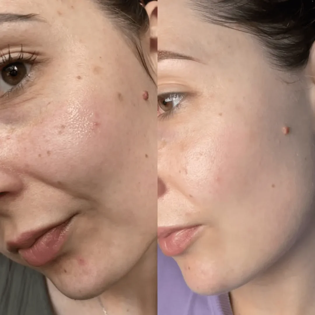 BEFORE:Â Enlarged pores, whiteheads/blackheads, uneven texture, dull complexion, dark spots, redness